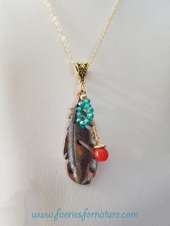 Native American Jewelry Native American Feather Necklace Gold Feather Necklace Tribal Feather Necklace Bohemian Feather Necklace