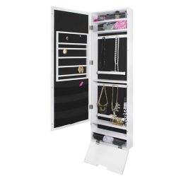 Gls White Wall Door Mount Jewelry Armoire With Mirror Lockable